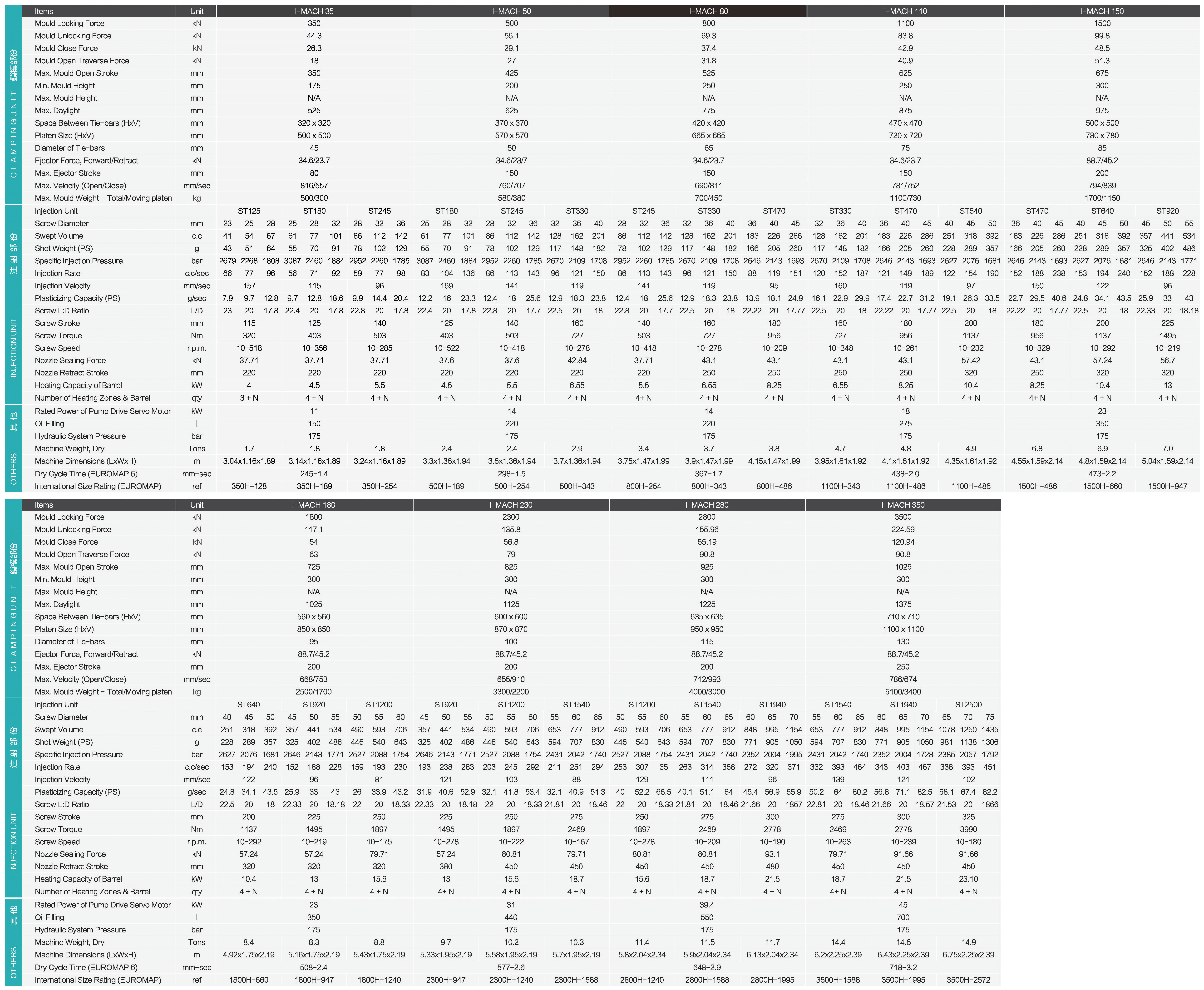 I-MACH Series ofers clean, flexible, cost saving solution for variety of applications. For a compact and space eficient solution, IMACH offers hydraulic two platen clamping. To ensure precision for users, IMACH is equipped with ST series single cylinder injection system.