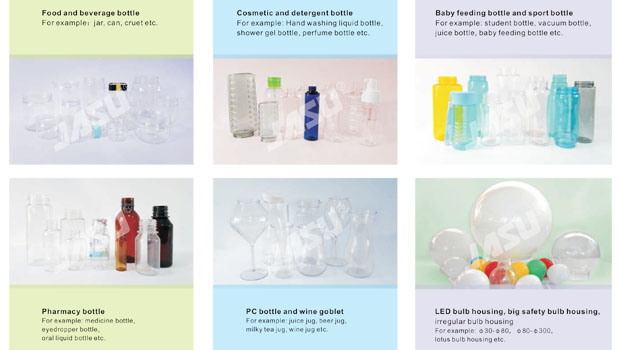 3. Widely used for manufacturing bottles for pharmaceutical, healthcare, food, beverages, cosmetics, lampshade and other applications.