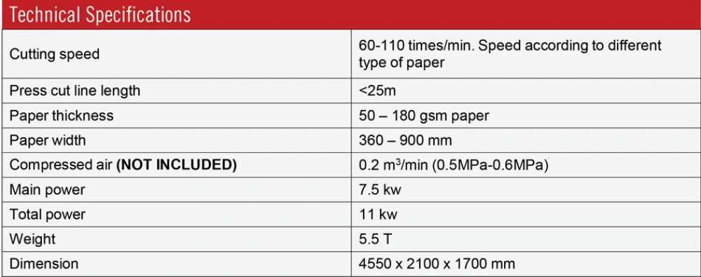 | Cutting speed | 60-110 times/min. Speed according to different type of paper |