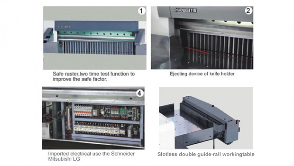 Hydraulic Double Digital Display Paper cutter adopt position testing device through liquid crystal screen to display its dimensions with resolution rate of 0.10mm, correct reading, paper feeding device adopts double guide-rail to ensure the cutting precision, so it is an ideal cutting machine of the first choice for precise items. The cutting adopts flat worm speed redactor. And the structure of knife bed is reasonable, make- ready layout. At present it is an advance machine in domestic market.